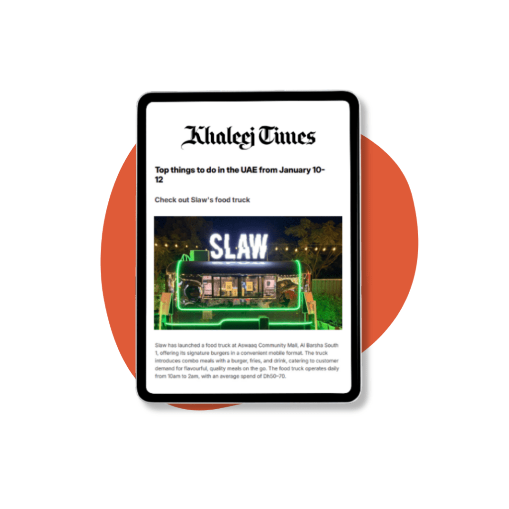2) As a result, SLAW was featured in Time Out Dubai, What’s On, and other top-tier publications, with coverage highlighting new products, store openings, and campaign activity.